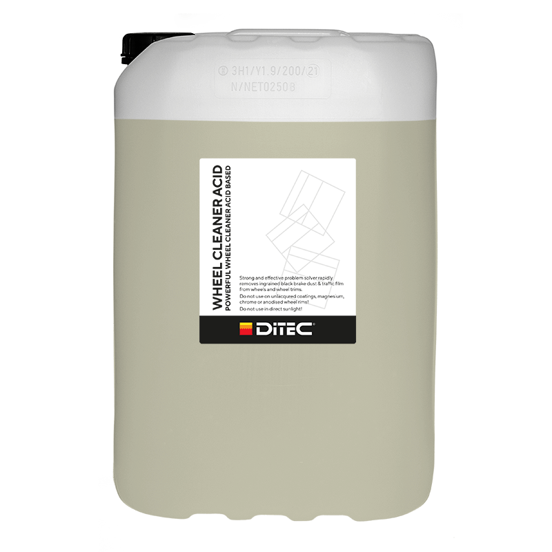 Ditec Wheel Cleaner Acid er en kraftig og høyeffektiv felgrens utviklet for å løse opp bremsestøv, rust, oksider og inngrodd smuss på felger. Den syrebaserte formelen gir rask og grundig rengjøring, og er spesielt godt egnet for svært skitne felger. Produktet er konsentrert og gir høy ytelse ved riktig bruk.