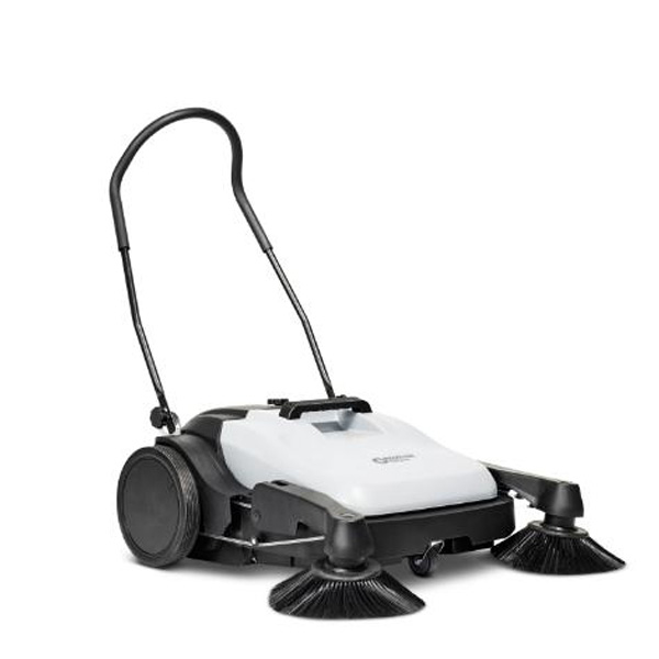 Feiemaskinen er lett og kompakt og dermed ogsåegnet til rengjøring der hvor plassen er trang. Børsten roterer ved hjelp av et gearsystem, når operatøren skyver maskinen fremover, og den har et lavt støynivå.Maskinen har ingen motor hvilket gjør dentil en god og kostnadsbesparende løsning tilrengjøring på dagtid.