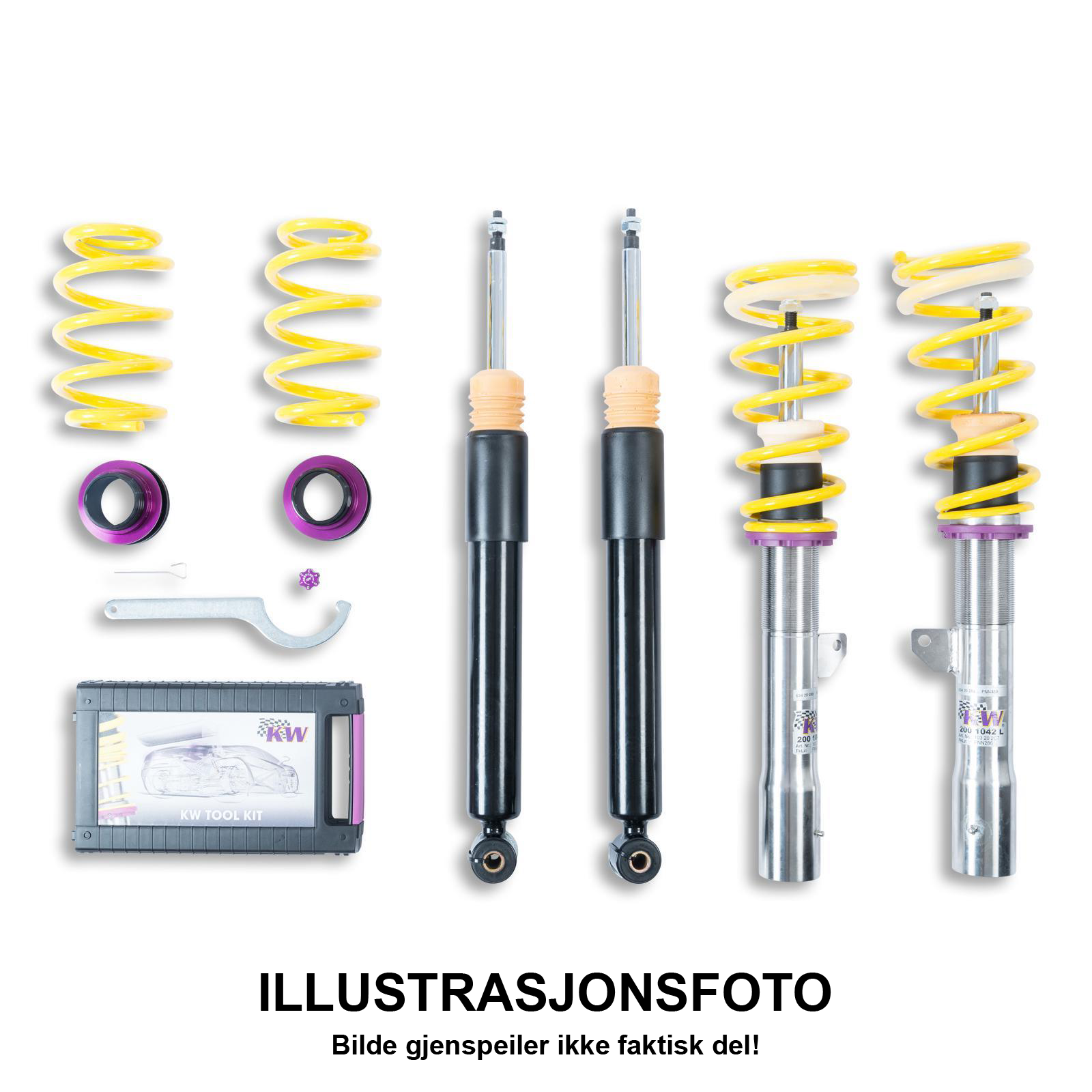 KW V1 coilover settet er KWs inngangsmodell for mer kjøreglede med en attraktiv og individuelt justerbar senking. På grunn av sin høykvalitets utførelse, støtdempere laget av rustfritt stål, korrosjonsbestandige fjærer, samt kompatible komponenter, står for langvarig kjøreglede - ikke bare bilens levetid.